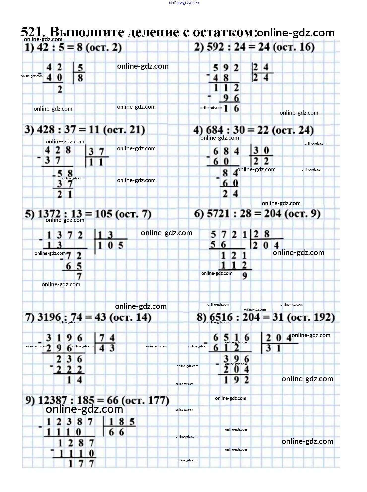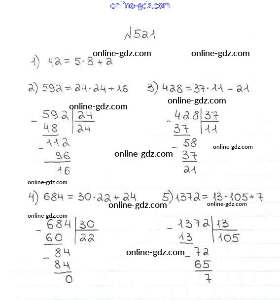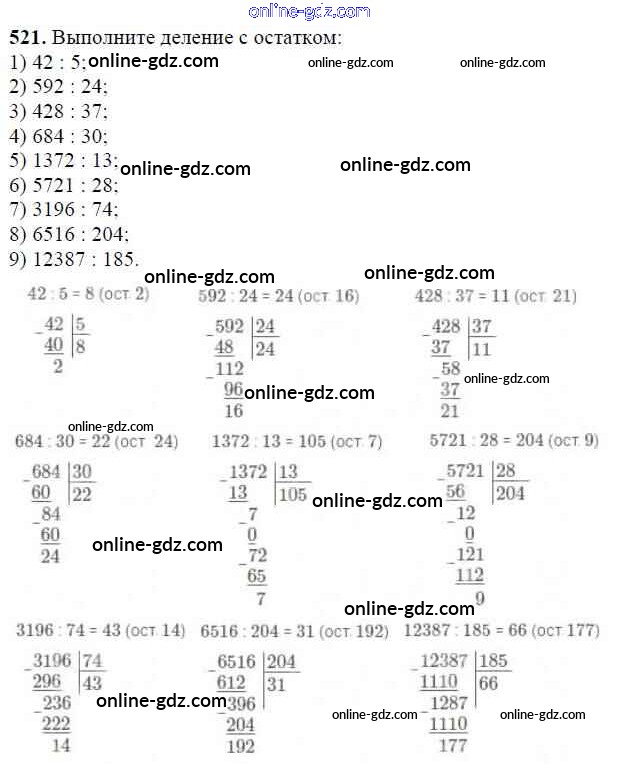Готовые домашние задания по Математике за 5 класс Учебник Мерзляк, Полонский Алгоритм успеха 2016 - §19. Деление с остатком Глава 3. Умножение и деление натуральных чисел 521