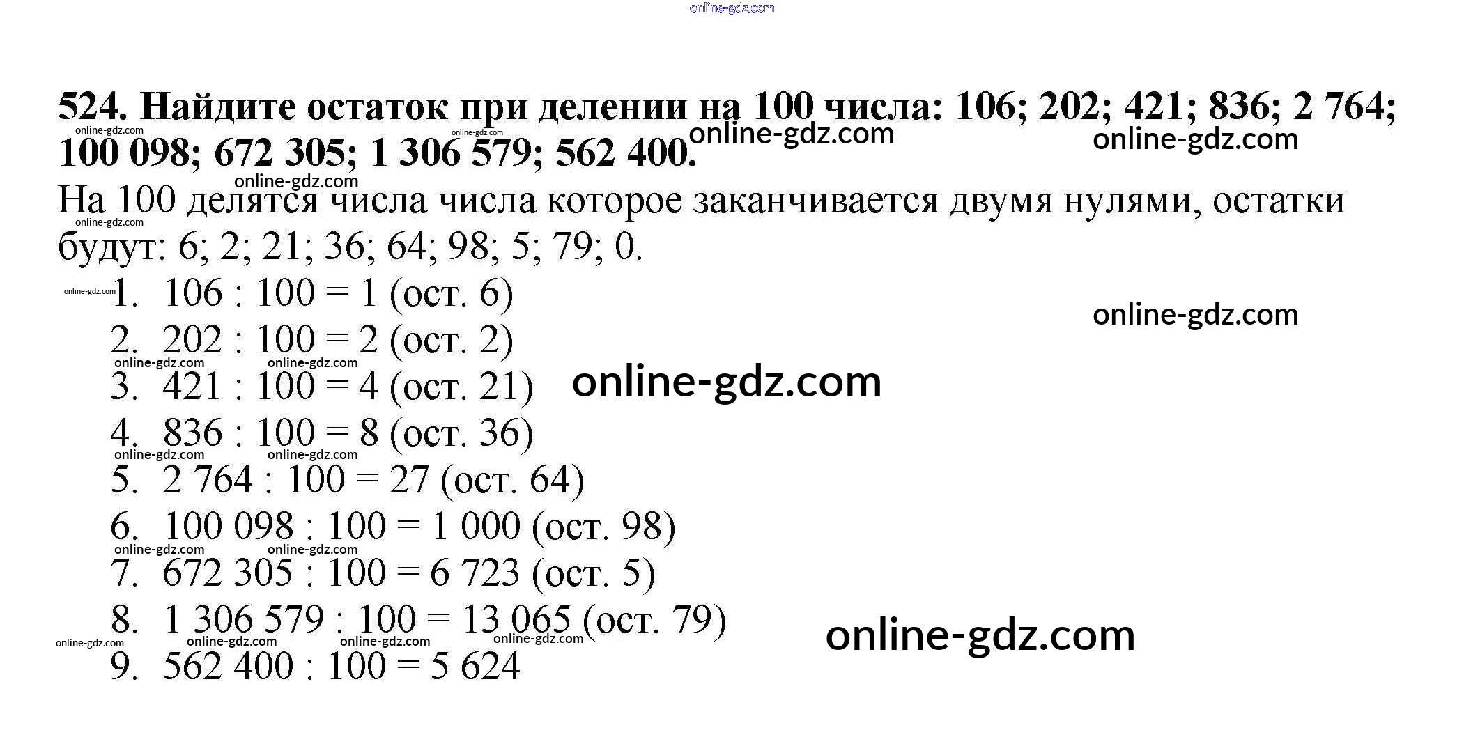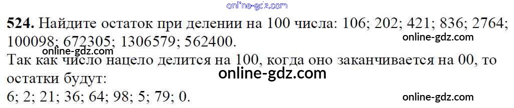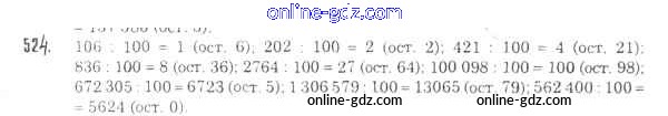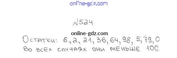 Готовые домашние задания по Математике за 5 класс Учебник Мерзляк, Полонский Алгоритм успеха 2016 - §19. Деление с остатком Глава 3. Умножение и деление натуральных чисел 524
