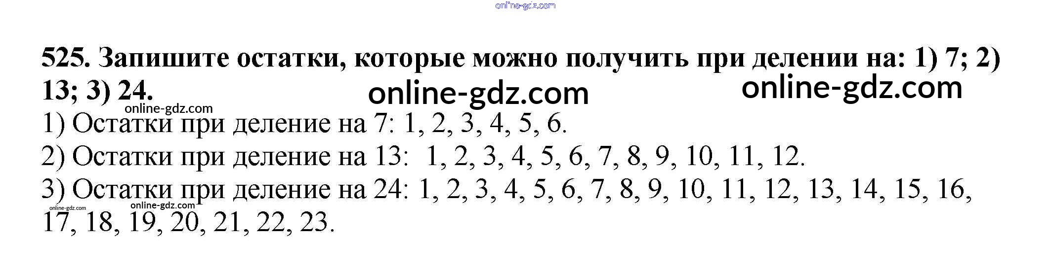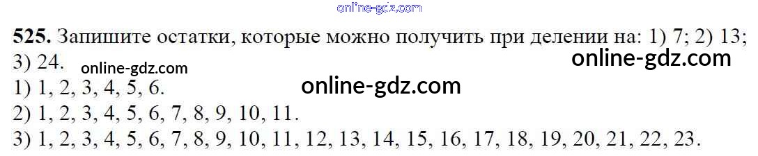 Готовые домашние задания по Математике за 5 класс Учебник Мерзляк, Полонский Алгоритм успеха 2016 - §19. Деление с остатком Глава 3. Умножение и деление натуральных чисел 525