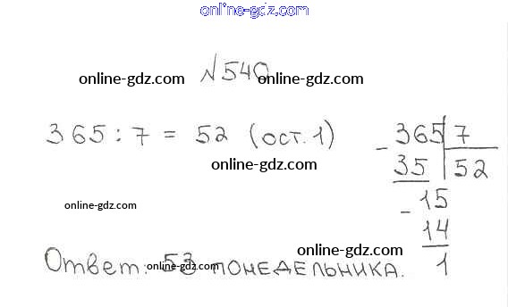 Готовые домашние задания по Математике за 5 класс Учебник Мерзляк, Полонский Алгоритм успеха 2016 - §19. Деление с остатком Глава 3. Умножение и деление натуральных чисел 540