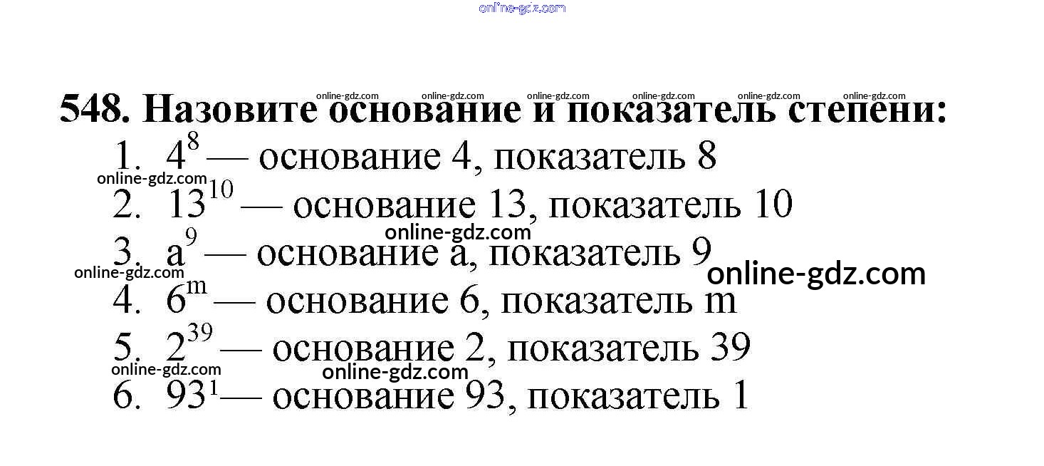 Готовые домашние задания по Математике за 5 класс Учебник Мерзляк, Полонский Алгоритм успеха 2016 - §20. Степень числа Глава 3. Умножение и деление натуральных чисел 548