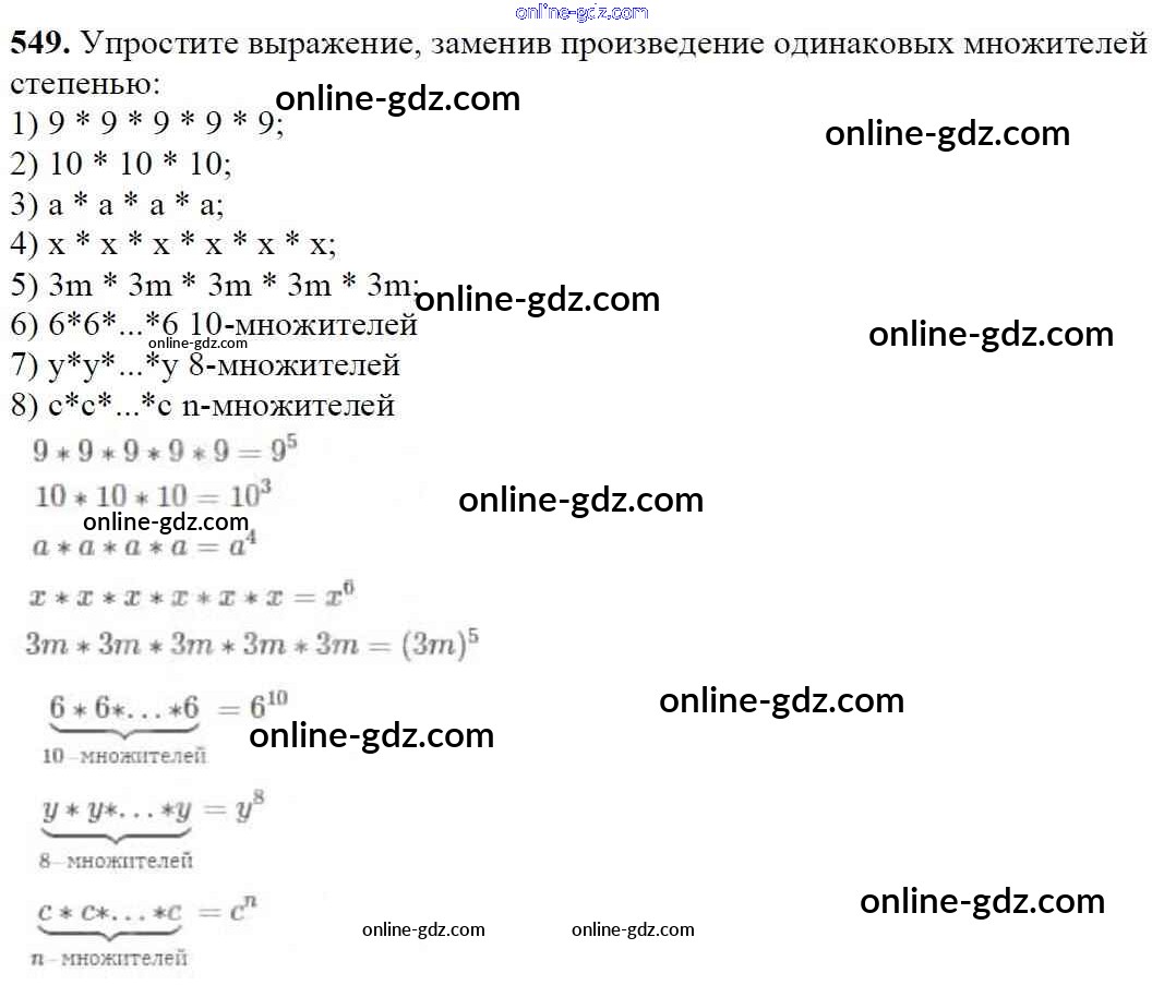 Готовые домашние задания по Математике за 5 класс Учебник Мерзляк, Полонский Алгоритм успеха 2016 - §20. Степень числа Глава 3. Умножение и деление натуральных чисел 549