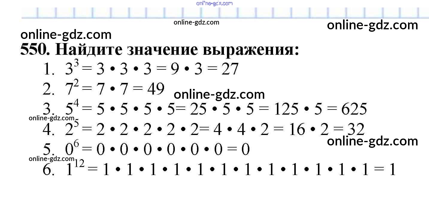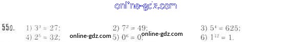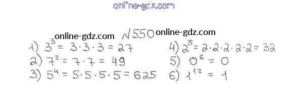 Готовые домашние задания по Математике за 5 класс Учебник Мерзляк, Полонский Алгоритм успеха 2016 - §20. Степень числа Глава 3. Умножение и деление натуральных чисел 550