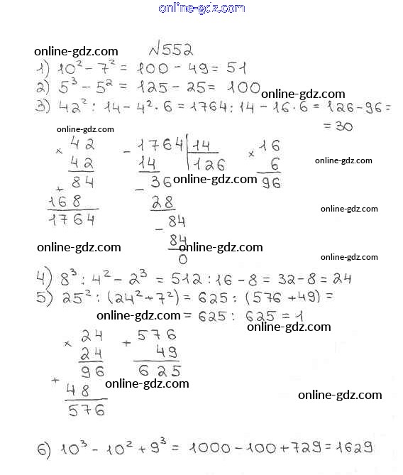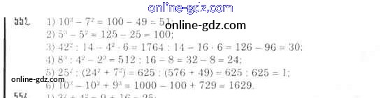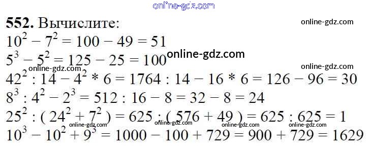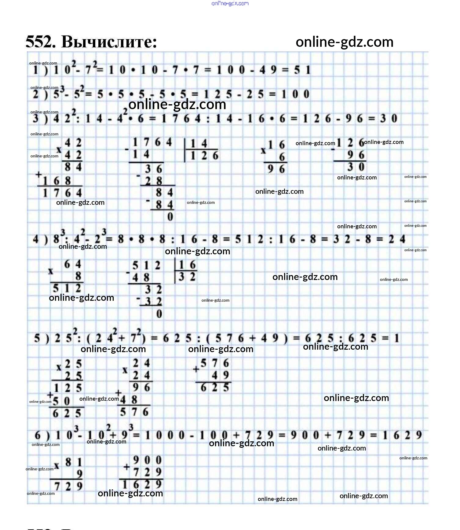 Готовые домашние задания по Математике за 5 класс Учебник Мерзляк, Полонский Алгоритм успеха 2016 - §20. Степень числа Глава 3. Умножение и деление натуральных чисел 552