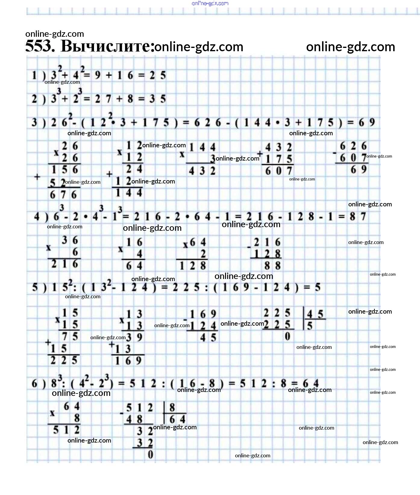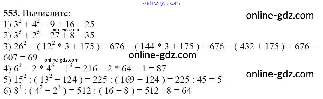 Готовые домашние задания по Математике за 5 класс Учебник Мерзляк, Полонский Алгоритм успеха 2016 - §20. Степень числа Глава 3. Умножение и деление натуральных чисел 553