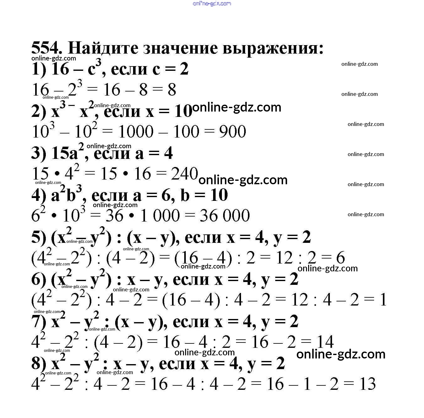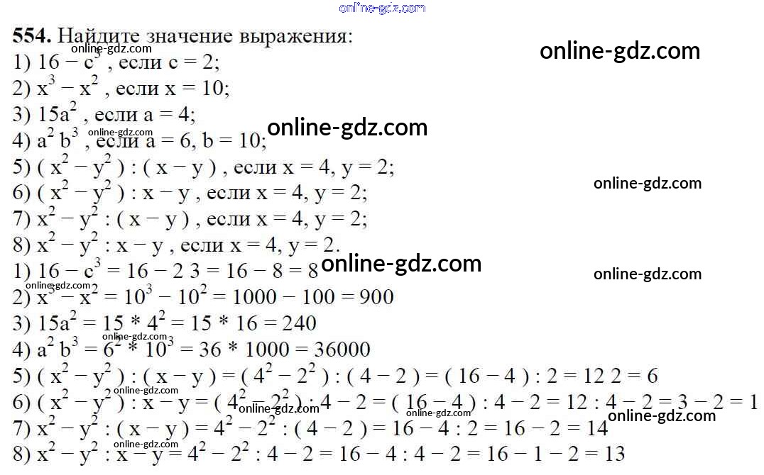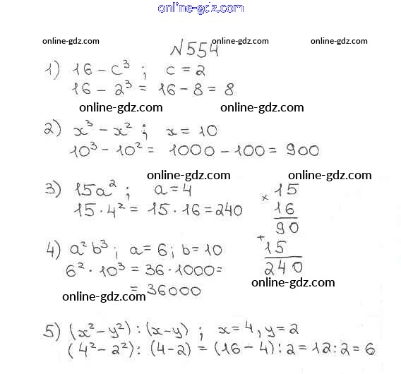 Готовые домашние задания по Математике за 5 класс Учебник Мерзляк, Полонский Алгоритм успеха 2016 - §20. Степень числа Глава 3. Умножение и деление натуральных чисел 554