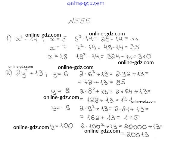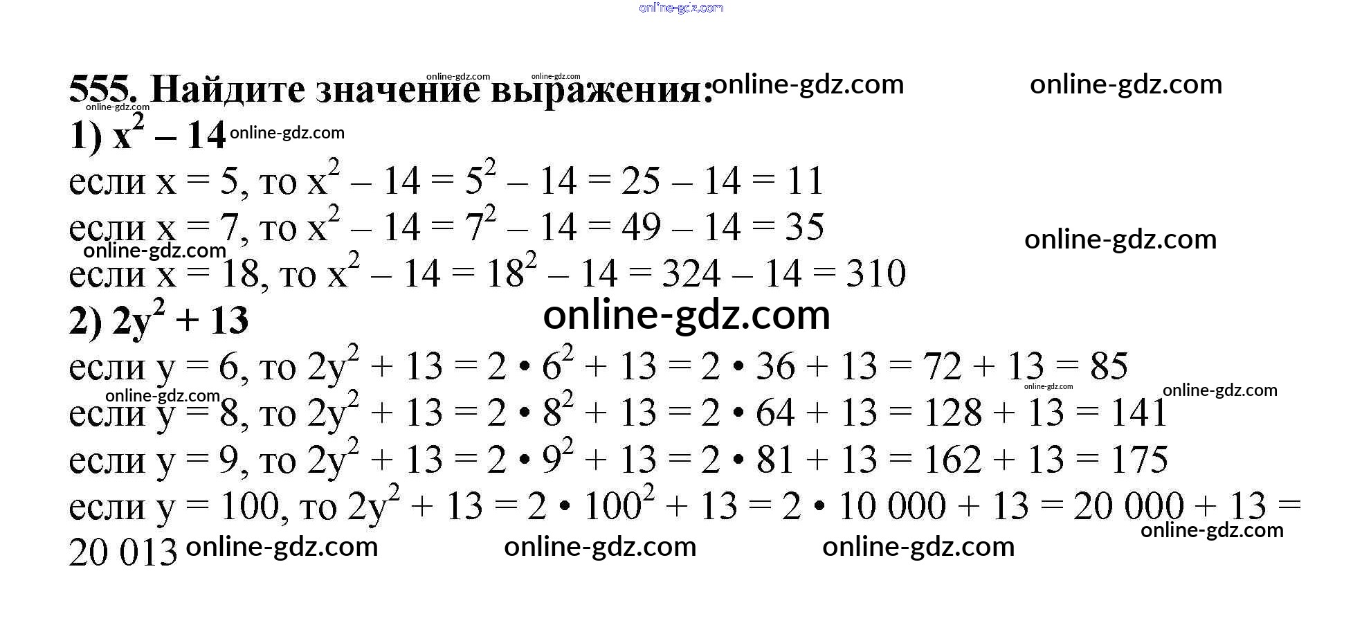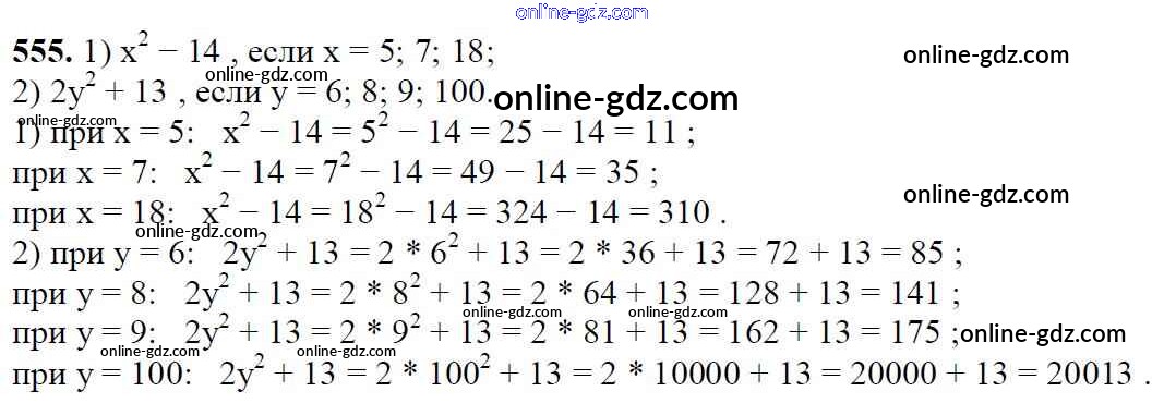 Готовые домашние задания по Математике за 5 класс Учебник Мерзляк, Полонский Алгоритм успеха 2016 - §20. Степень числа Глава 3. Умножение и деление натуральных чисел 555