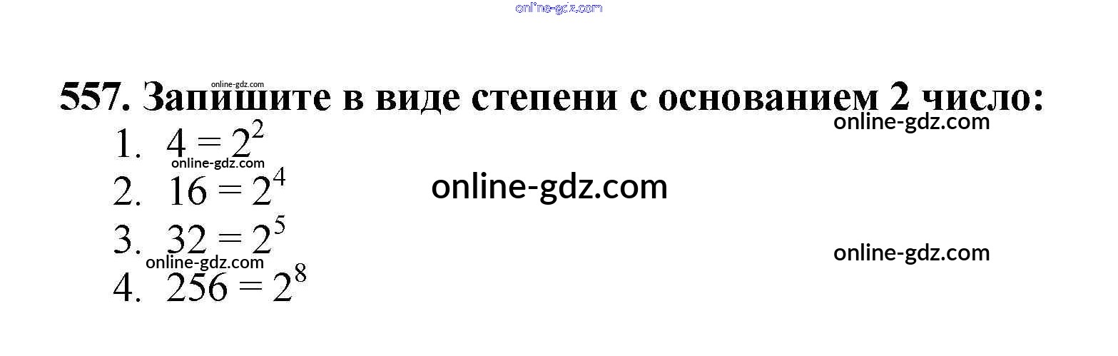 Готовые домашние задания по Математике за 5 класс Учебник Мерзляк, Полонский Алгоритм успеха 2016 - §20. Степень числа Глава 3. Умножение и деление натуральных чисел 557