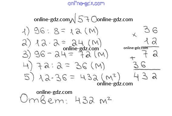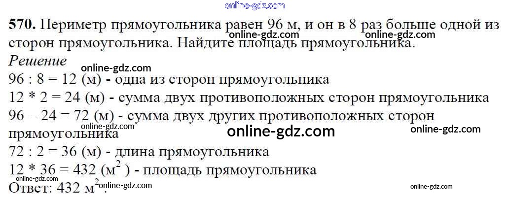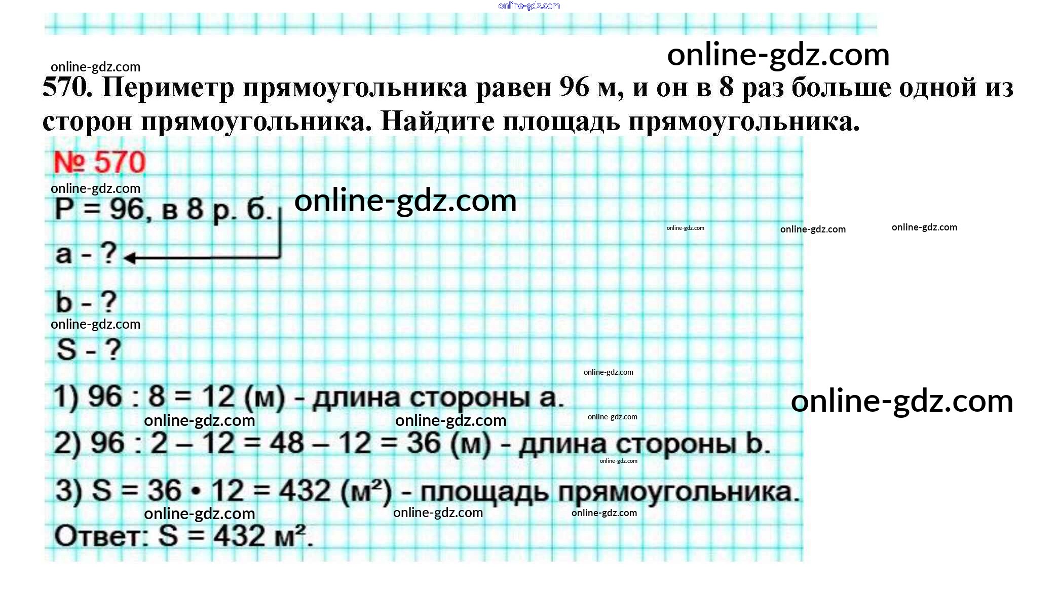Готовые домашние задания по Математике за 5 класс Учебник Мерзляк, Полонский Алгоритм успеха 2016 - §21. Площадь. Площадь прямоугольника Глава 3. Умножение и деление натуральных чисел 570