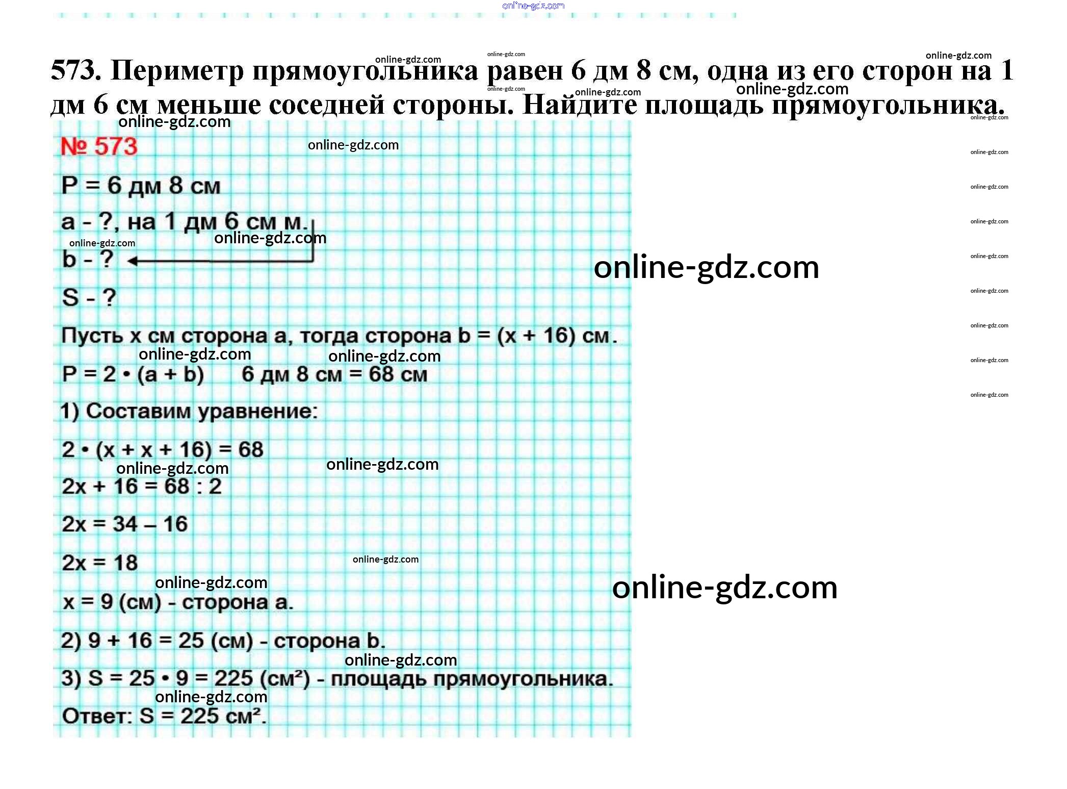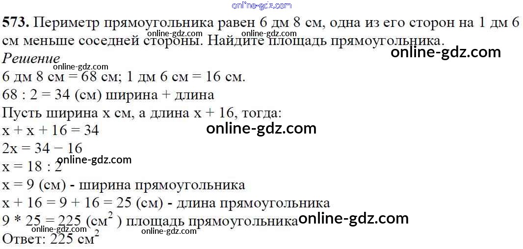 Готовые домашние задания по Математике за 5 класс Учебник Мерзляк, Полонский Алгоритм успеха 2016 - §21. Площадь. Площадь прямоугольника Глава 3. Умножение и деление натуральных чисел 573