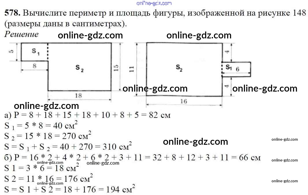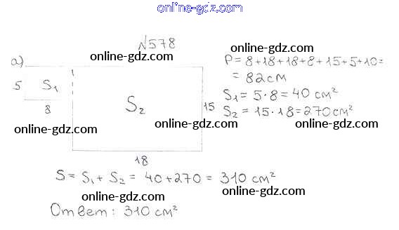 Готовые домашние задания по Математике за 5 класс Учебник Мерзляк, Полонский Алгоритм успеха 2016 - §21. Площадь. Площадь прямоугольника Глава 3. Умножение и деление натуральных чисел 578