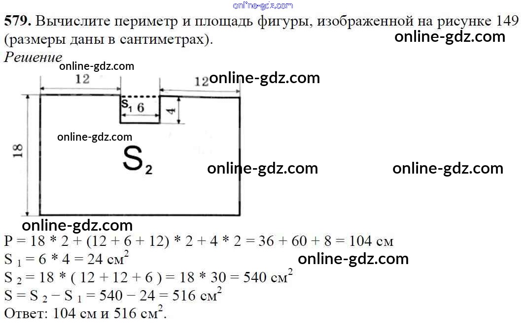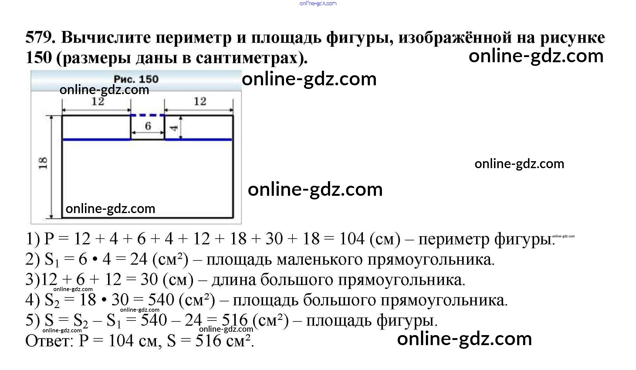 Готовые домашние задания по Математике за 5 класс Учебник Мерзляк, Полонский Алгоритм успеха 2016 - §21. Площадь. Площадь прямоугольника Глава 3. Умножение и деление натуральных чисел 579