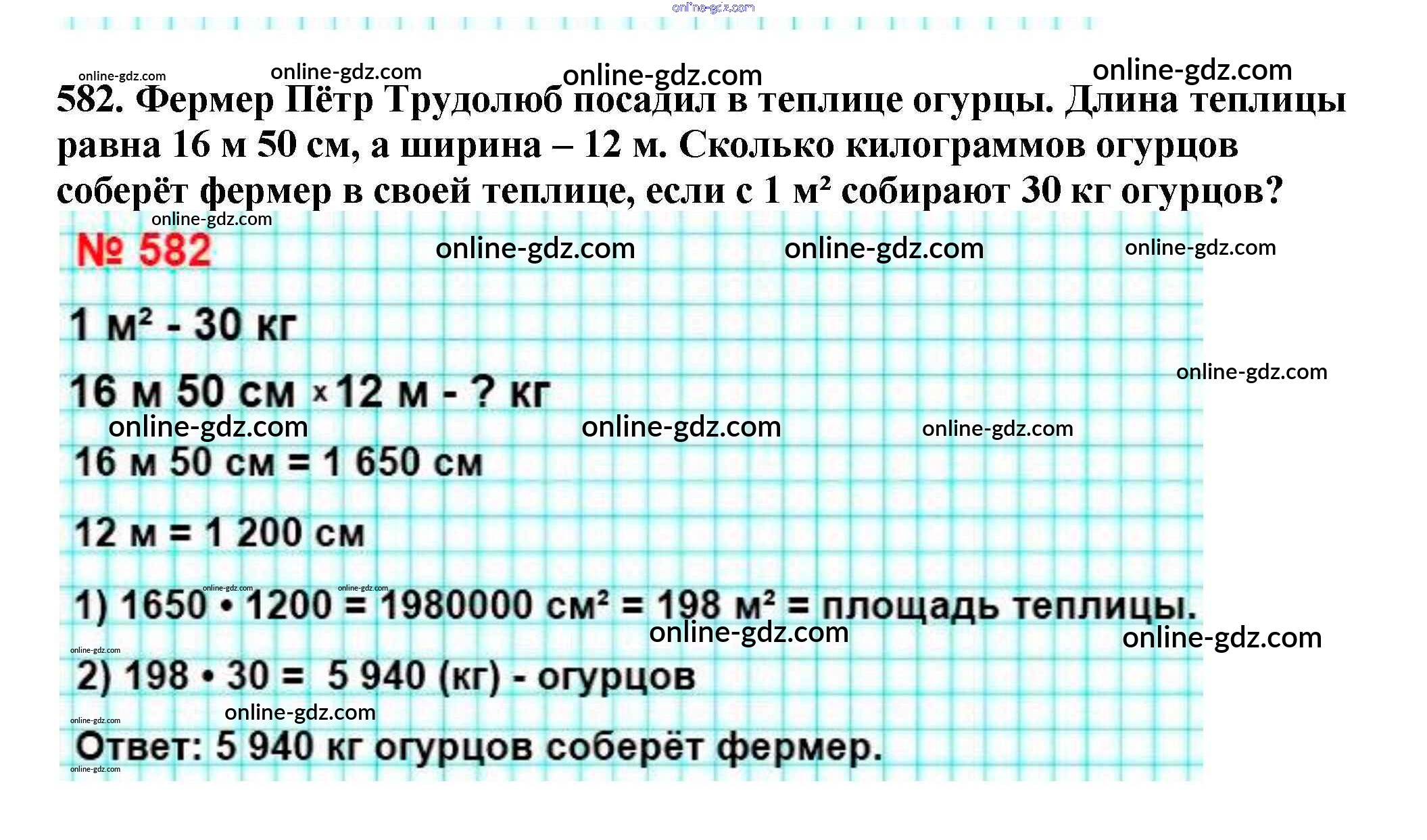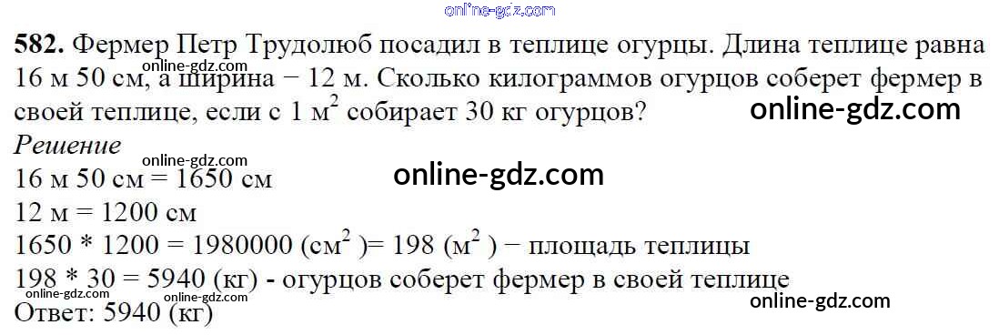 Готовые домашние задания по Математике за 5 класс Учебник Мерзляк, Полонский Алгоритм успеха 2016 - §21. Площадь. Площадь прямоугольника Глава 3. Умножение и деление натуральных чисел 582
