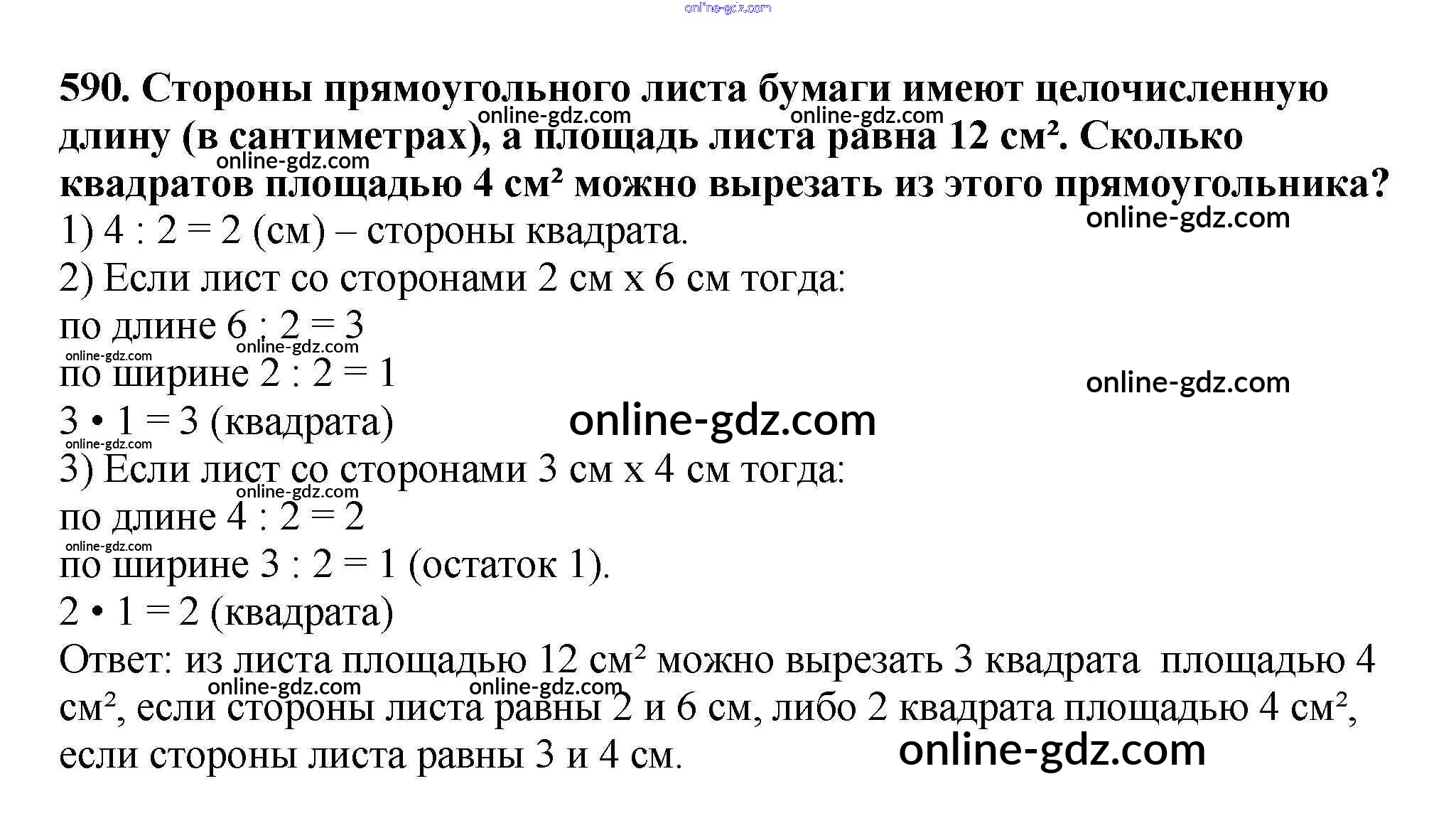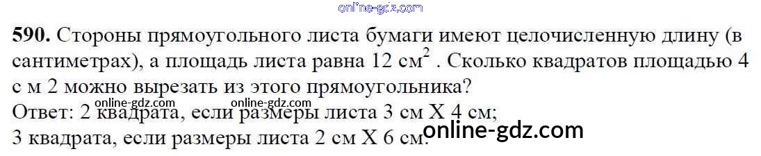 Готовые домашние задания по Математике за 5 класс Учебник Мерзляк, Полонский Алгоритм успеха 2016 - §21. Площадь. Площадь прямоугольника Глава 3. Умножение и деление натуральных чисел 590