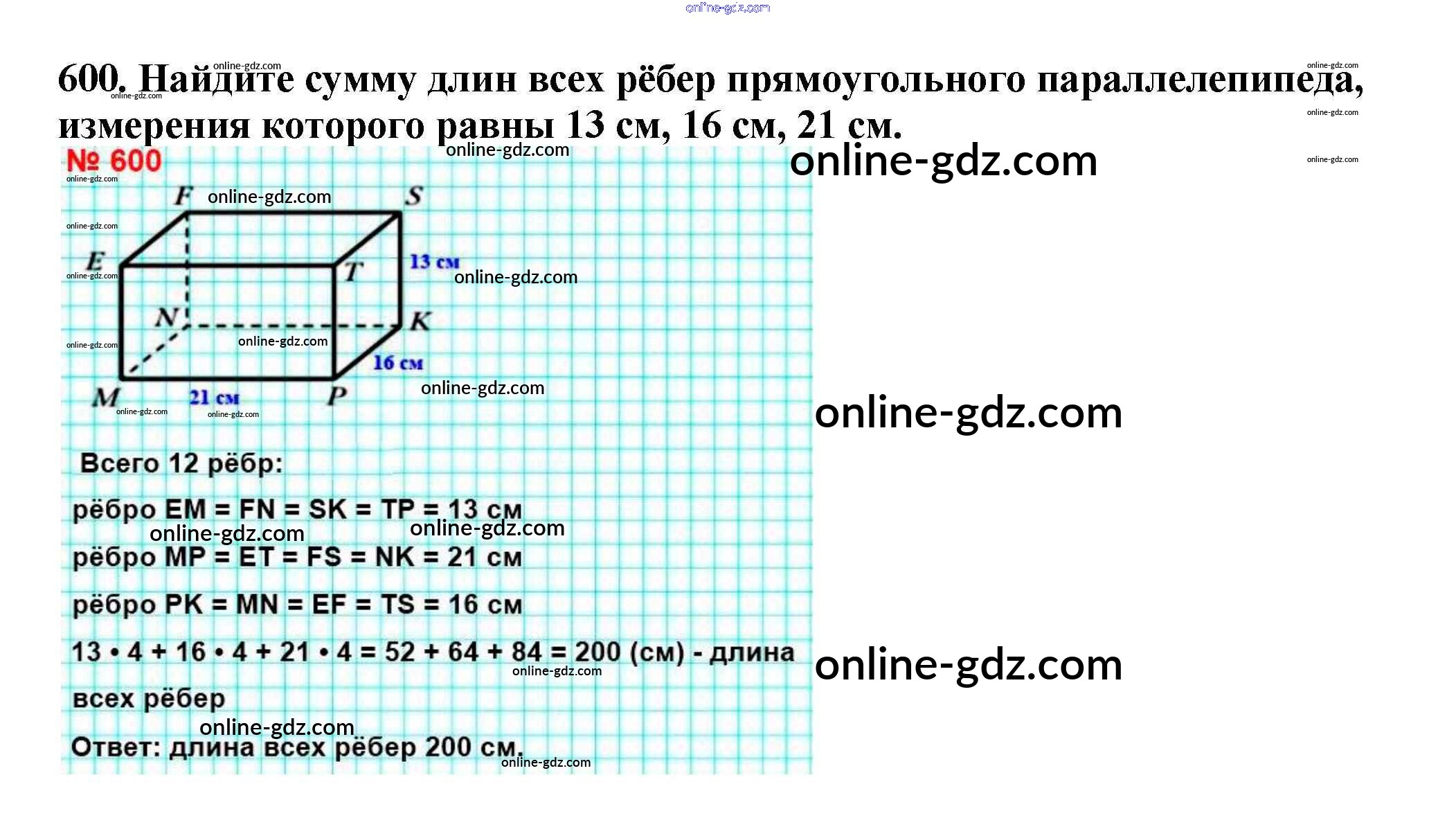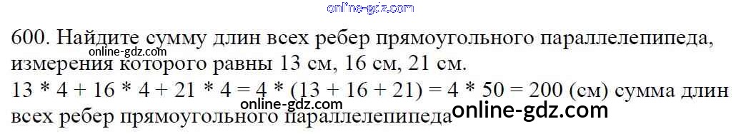 Готовые домашние задания по Математике за 5 класс Учебник Мерзляк, Полонский Алгоритм успеха 2016 - §22. Прямоугольный параллелепипед. Пирамида Глава 3. Умножение и деление натуральных чисел 600