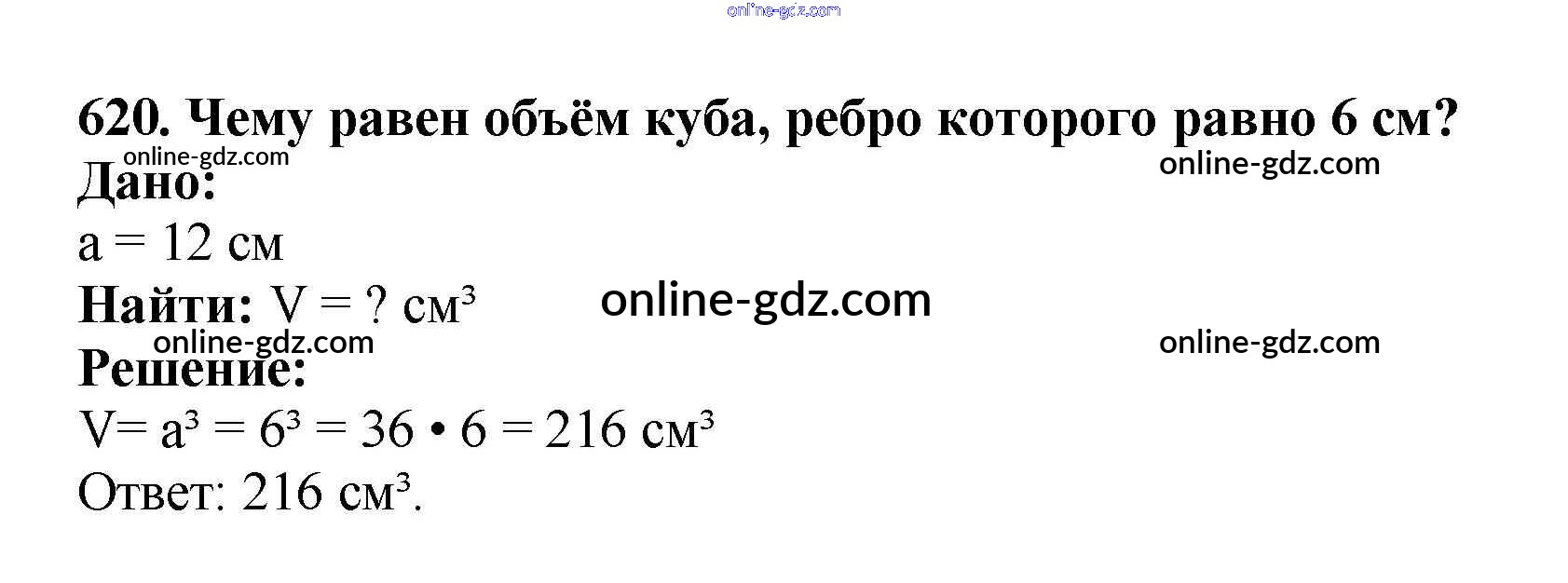 Готовые домашние задания по Математике за 5 класс Учебник Мерзляк, Полонский Алгоритм успеха 2016 - §23. Объём прямоугольного параллелепипеда Глава 3. Умножение и деление натуральных чисел 620