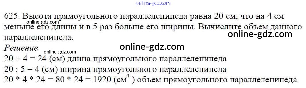 Готовые домашние задания по Математике за 5 класс Учебник Мерзляк, Полонский Алгоритм успеха 2016 - §23. Объём прямоугольного параллелепипеда Глава 3. Умножение и деление натуральных чисел 625