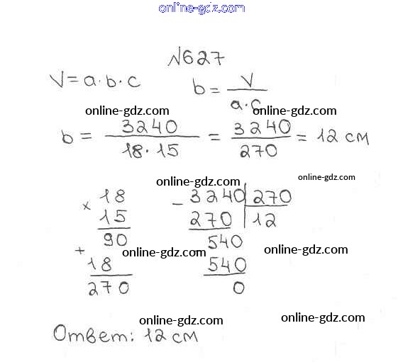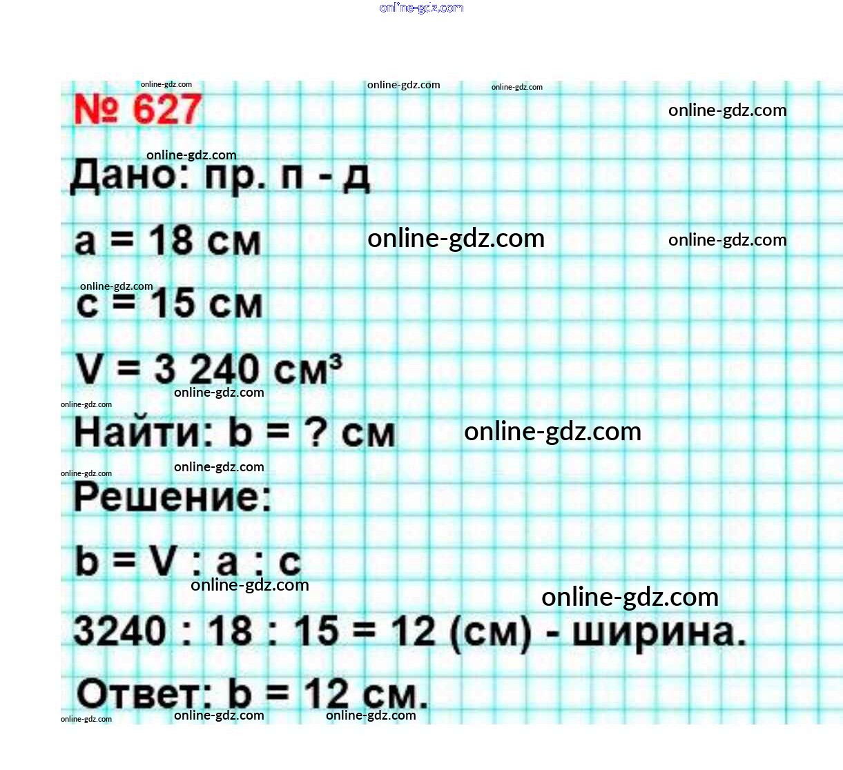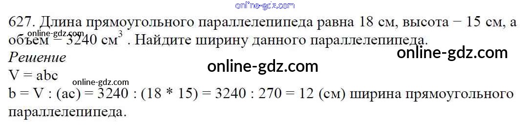 Готовые домашние задания по Математике за 5 класс Учебник Мерзляк, Полонский Алгоритм успеха 2016 - §23. Объём прямоугольного параллелепипеда Глава 3. Умножение и деление натуральных чисел 627