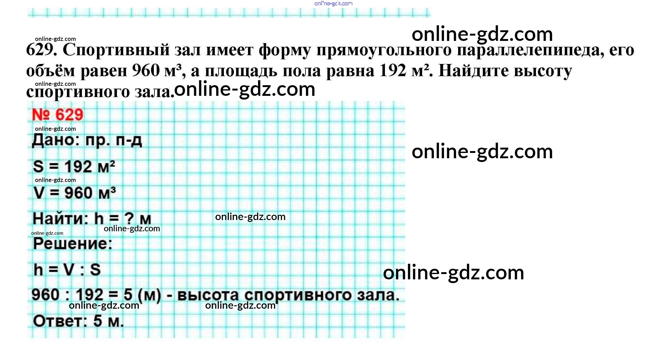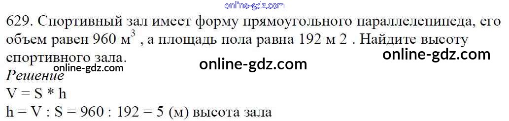 Готовые домашние задания по Математике за 5 класс Учебник Мерзляк, Полонский Алгоритм успеха 2016 - §23. Объём прямоугольного параллелепипеда Глава 3. Умножение и деление натуральных чисел 629