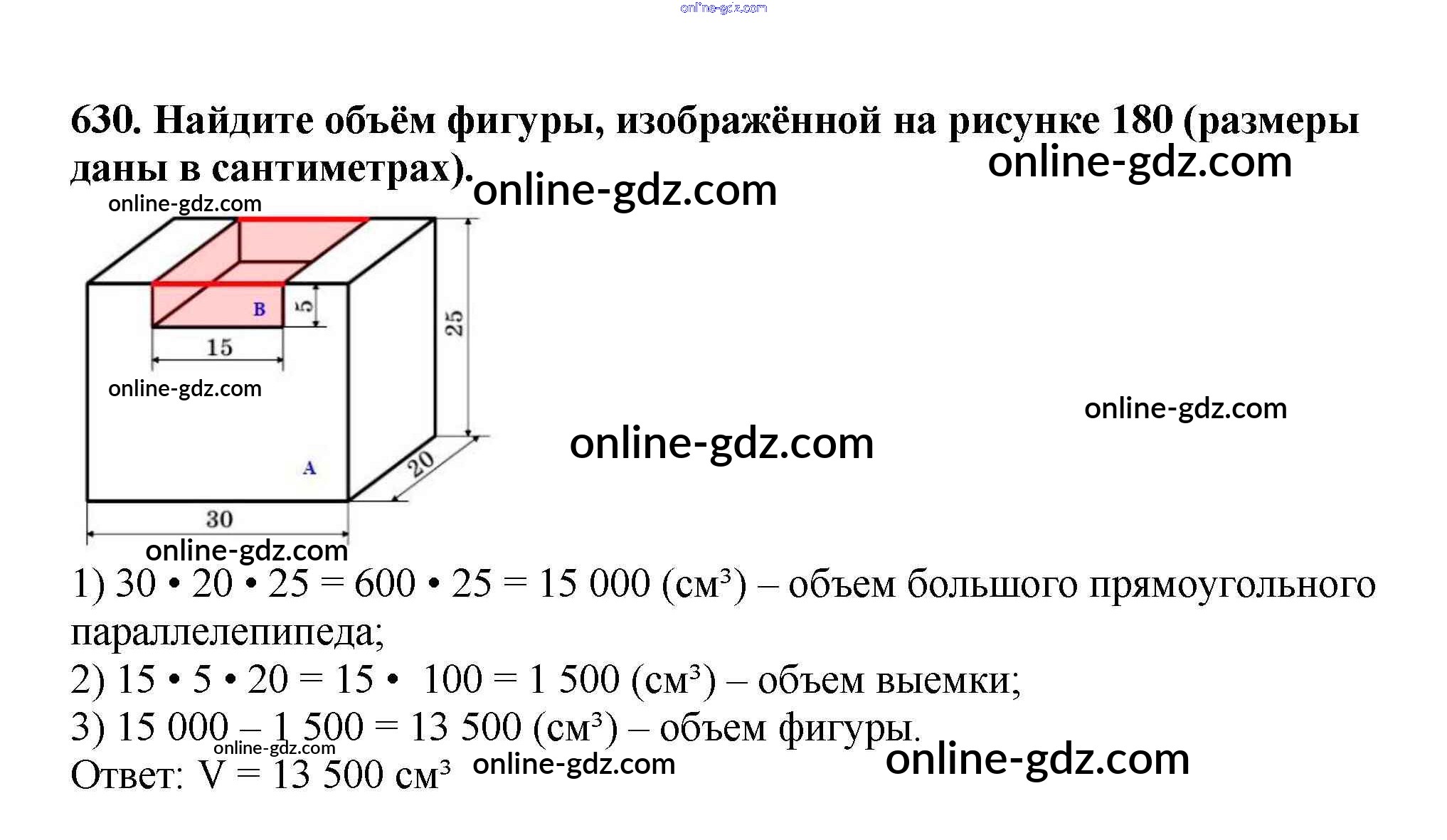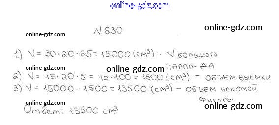 Готовые домашние задания по Математике за 5 класс Учебник Мерзляк, Полонский Алгоритм успеха 2016 - §23. Объём прямоугольного параллелепипеда Глава 3. Умножение и деление натуральных чисел 630