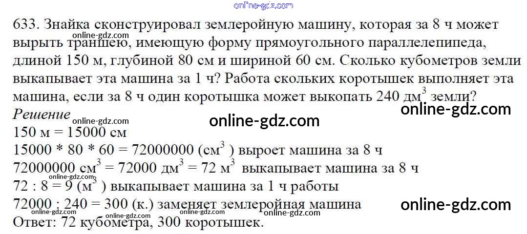 Готовые домашние задания по Математике за 5 класс Учебник Мерзляк, Полонский Алгоритм успеха 2016 - §23. Объём прямоугольного параллелепипеда Глава 3. Умножение и деление натуральных чисел 633