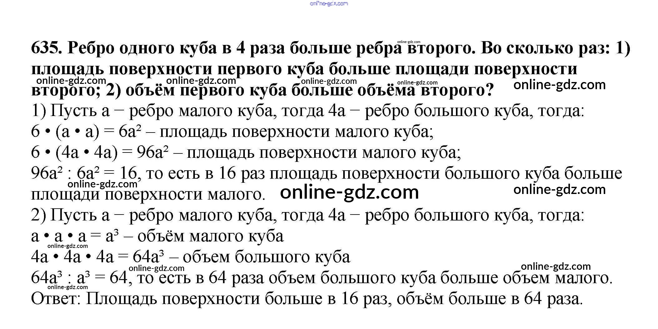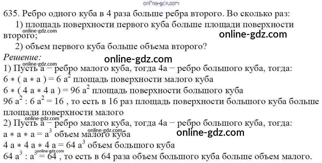 Готовые домашние задания по Математике за 5 класс Учебник Мерзляк, Полонский Алгоритм успеха 2016 - §23. Объём прямоугольного параллелепипеда Глава 3. Умножение и деление натуральных чисел 635