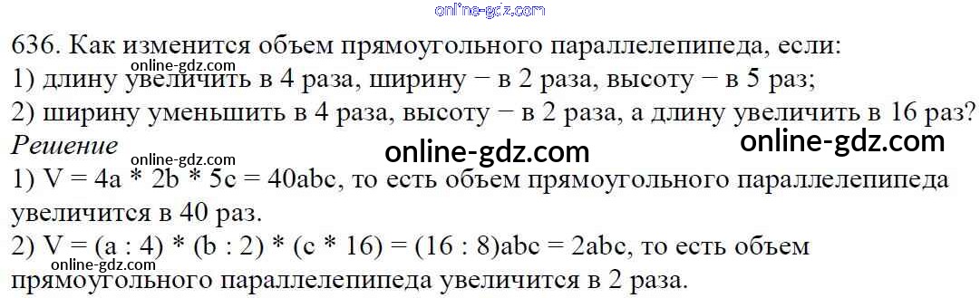 Готовые домашние задания по Математике за 5 класс Учебник Мерзляк, Полонский Алгоритм успеха 2016 - §23. Объём прямоугольного параллелепипеда Глава 3. Умножение и деление натуральных чисел 636
