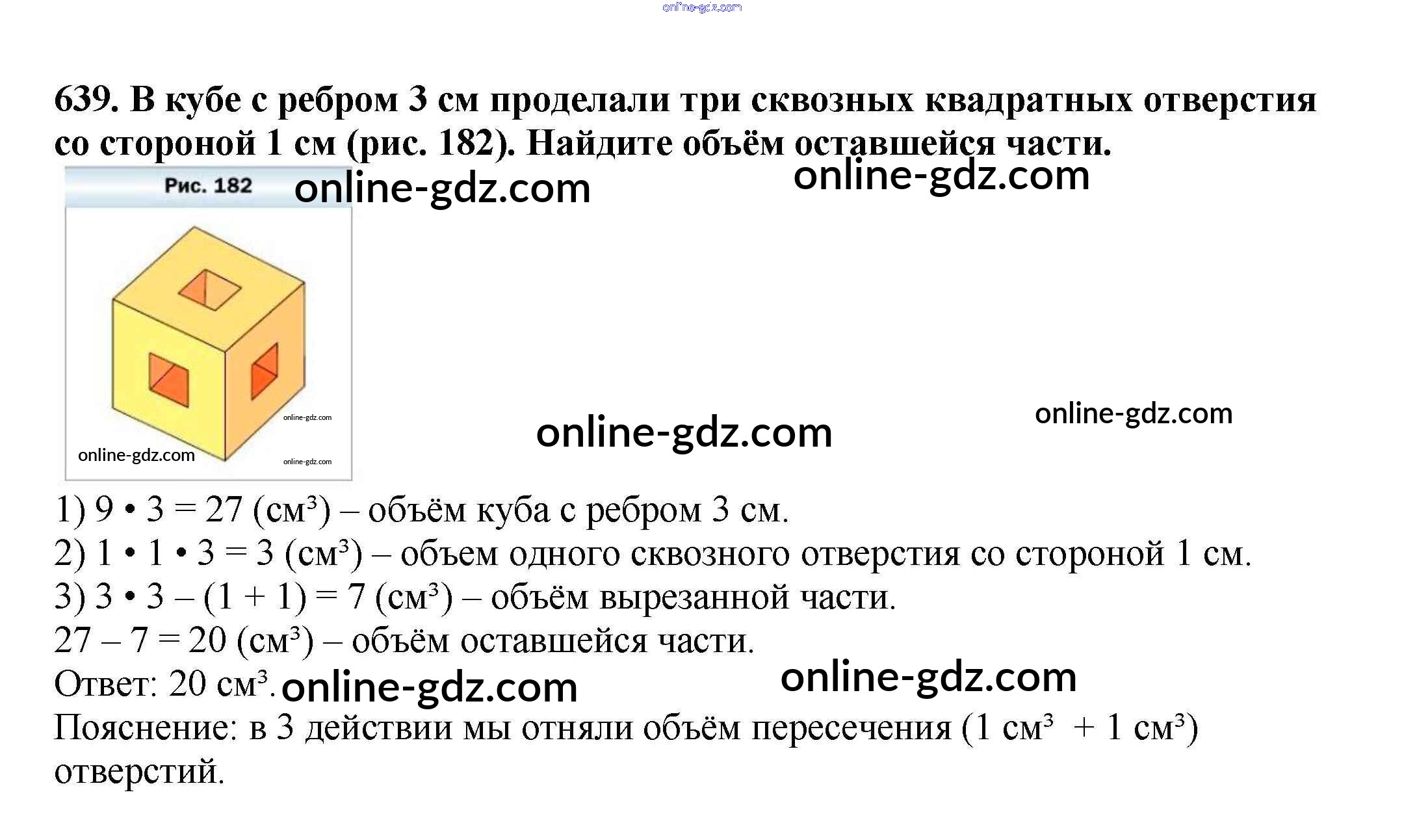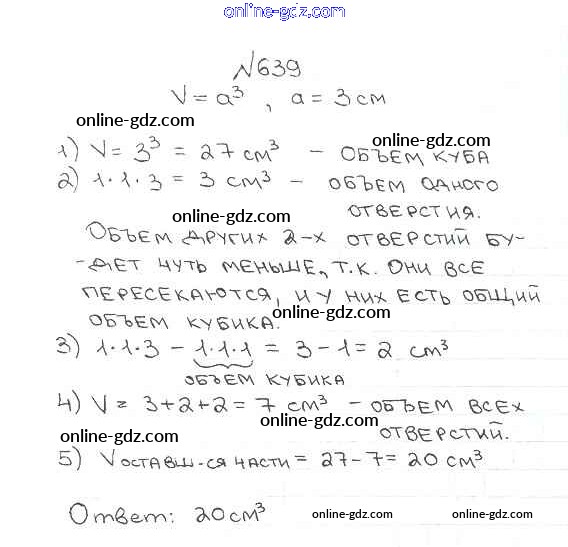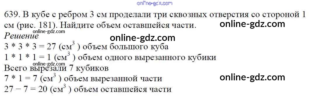 Готовые домашние задания по Математике за 5 класс Учебник Мерзляк, Полонский Алгоритм успеха 2016 - §23. Объём прямоугольного параллелепипеда Глава 3. Умножение и деление натуральных чисел 639