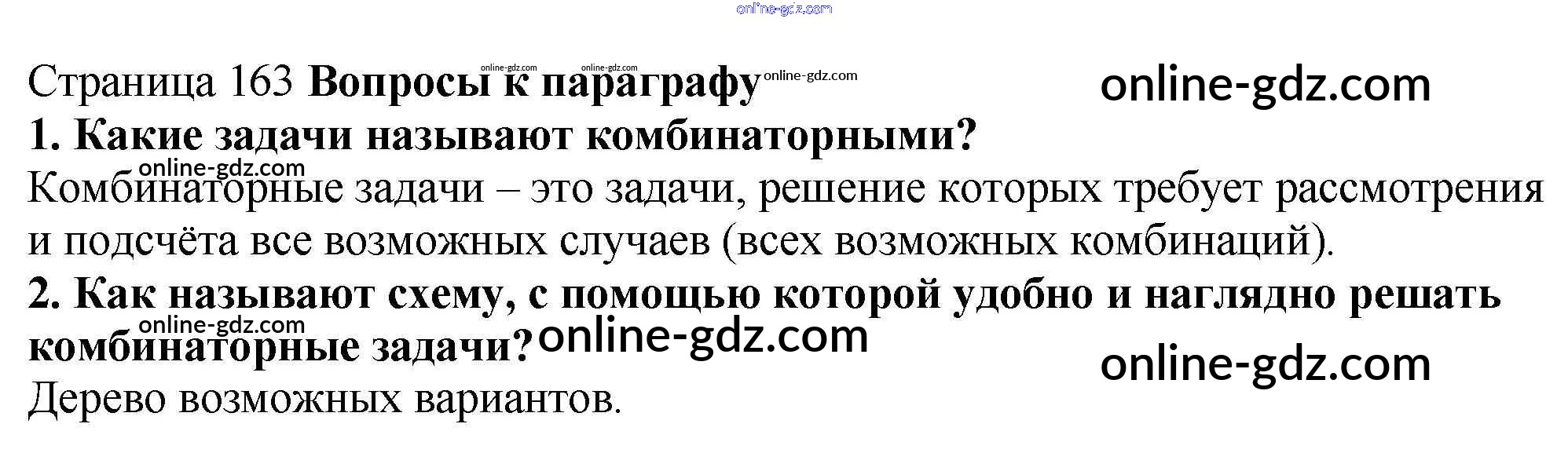 Готовые домашние задания по Математике за 5 класс Учебник Мерзляк, Полонский Алгоритм успеха 2016 - Вопросы (страница 163) §24. Комбинаторные задачи страница 163