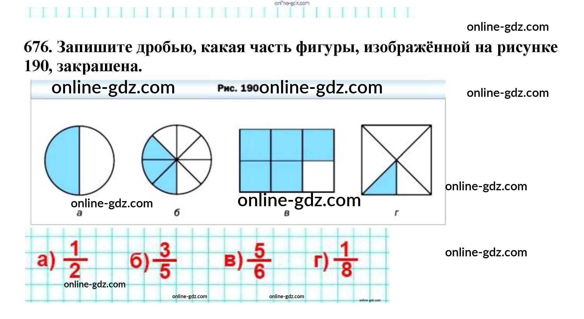 Готовые домашние задания по Математике за 5 класс Учебник Мерзляк, Полонский Алгоритм успеха 2016 - §25. Понятие обыкновенной дроби Глава 4. Обыкновенные дроби 676
