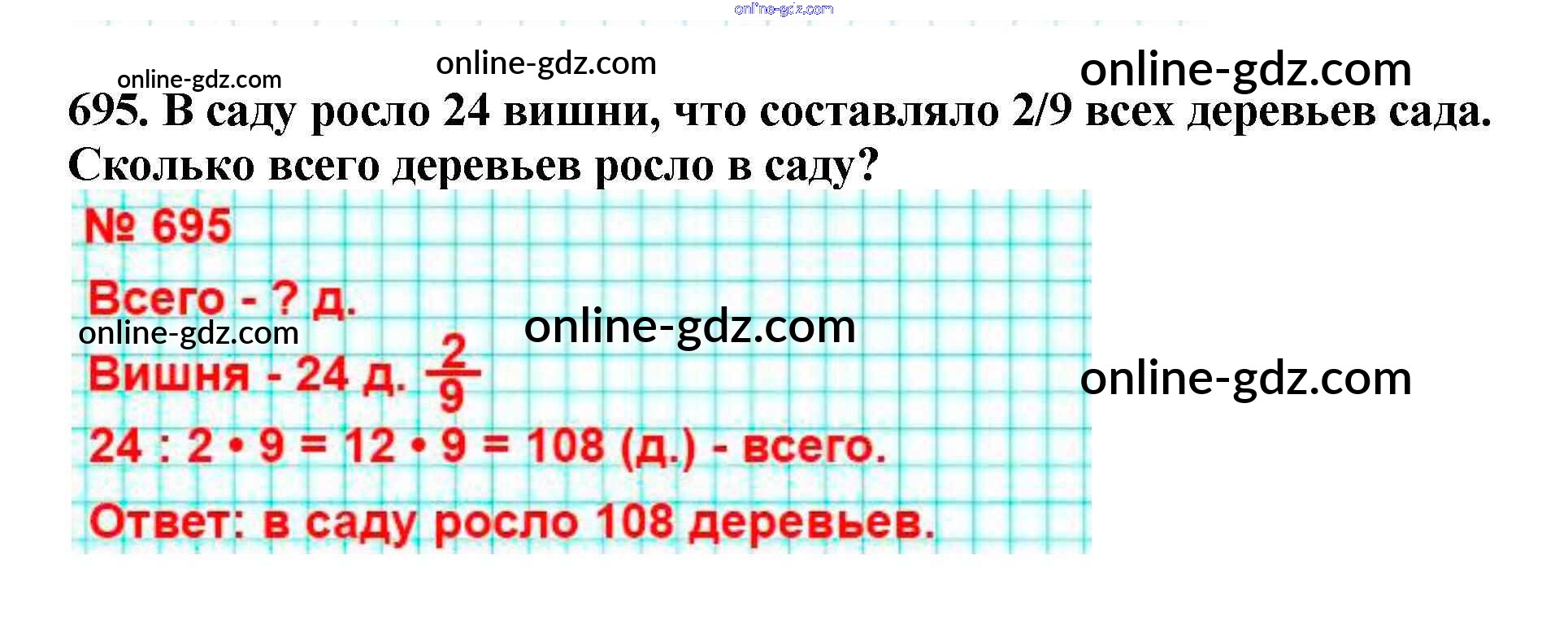 Готовые домашние задания по Математике за 5 класс Учебник Мерзляк, Полонский Алгоритм успеха 2016 - §25. Понятие обыкновенной дроби Глава 4. Обыкновенные дроби 695