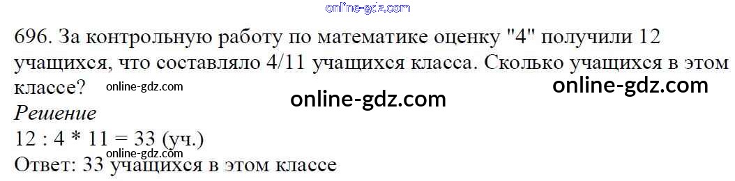 Готовые домашние задания по Математике за 5 класс Учебник Мерзляк, Полонский Алгоритм успеха 2016 - §25. Понятие обыкновенной дроби Глава 4. Обыкновенные дроби 696