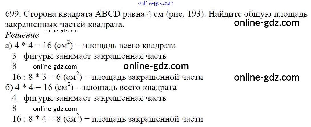 Готовые домашние задания по Математике за 5 класс Учебник Мерзляк, Полонский Алгоритм успеха 2016 - §25. Понятие обыкновенной дроби Глава 4. Обыкновенные дроби 699