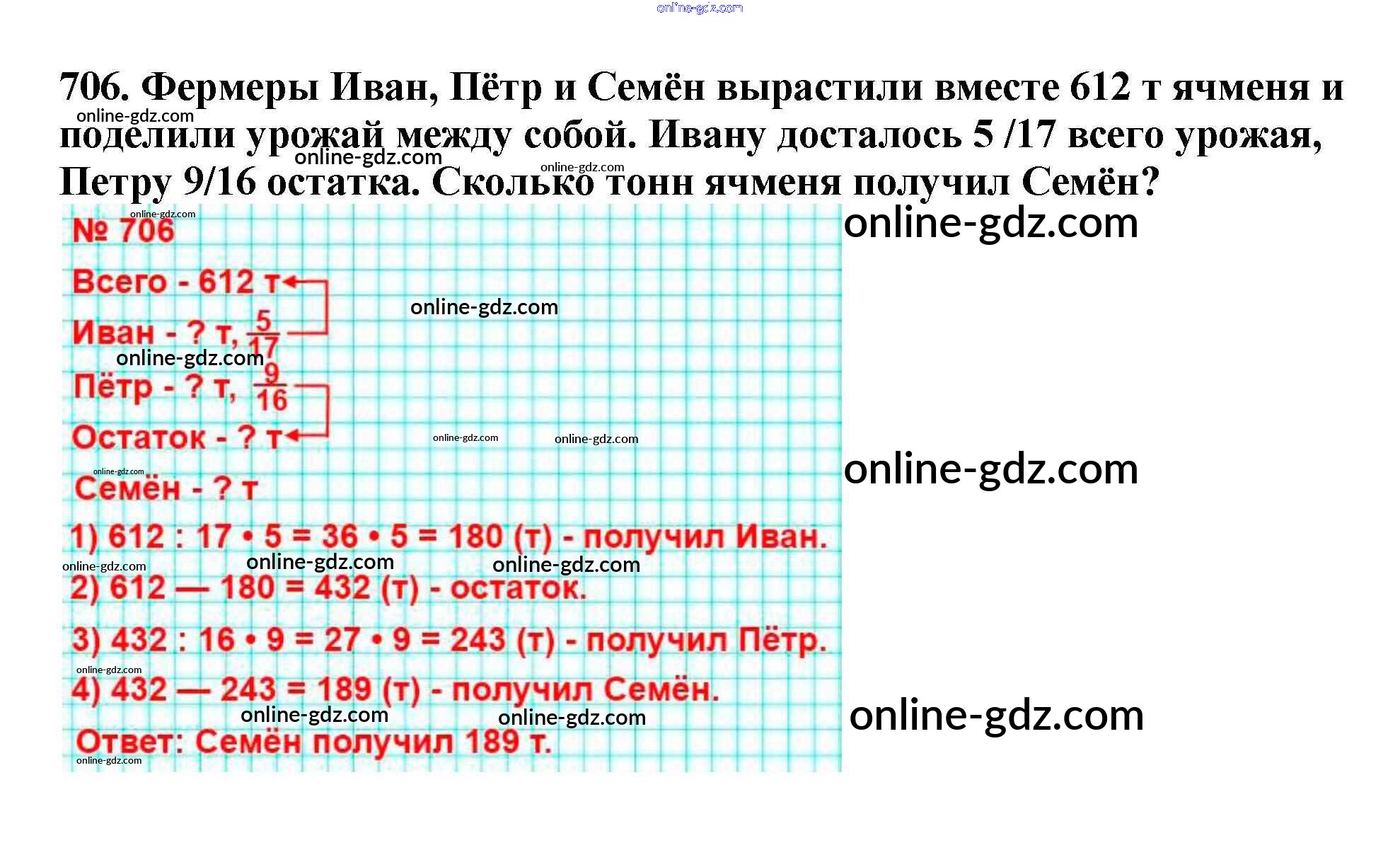 Готовые домашние задания по Математике за 5 класс Учебник Мерзляк, Полонский Алгоритм успеха 2016 - §25. Понятие обыкновенной дроби Глава 4. Обыкновенные дроби 706