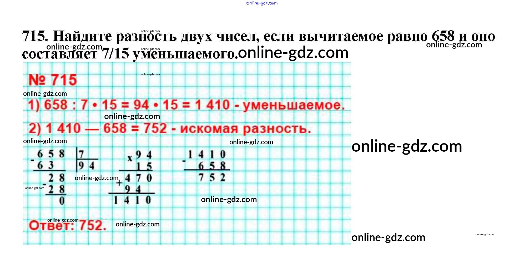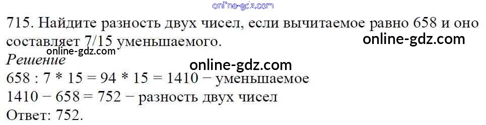 Готовые домашние задания по Математике за 5 класс Учебник Мерзляк, Полонский Алгоритм успеха 2016 - §25. Понятие обыкновенной дроби Глава 4. Обыкновенные дроби 715