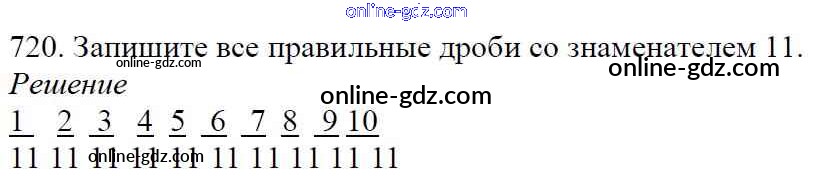 Готовые домашние задания по Математике за 5 класс Учебник Мерзляк, Полонский Алгоритм успеха 2016 - §26. Правильные и неправильные дроби. Сравнение дробей Глава 4. Обыкновенные дроби 720