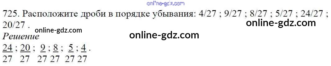 Готовые домашние задания по Математике за 5 класс Учебник Мерзляк, Полонский Алгоритм успеха 2016 - §26. Правильные и неправильные дроби. Сравнение дробей Глава 4. Обыкновенные дроби 725