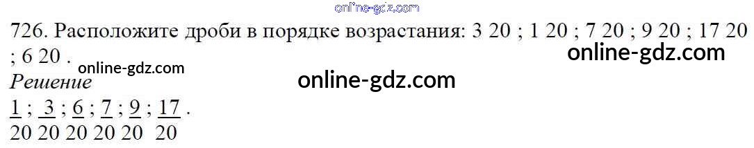 Готовые домашние задания по Математике за 5 класс Учебник Мерзляк, Полонский Алгоритм успеха 2016 - §26. Правильные и неправильные дроби. Сравнение дробей Глава 4. Обыкновенные дроби 726