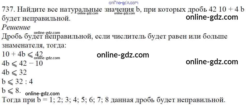 Готовые домашние задания по Математике за 5 класс Учебник Мерзляк, Полонский Алгоритм успеха 2016 - §26. Правильные и неправильные дроби. Сравнение дробей Глава 4. Обыкновенные дроби 737