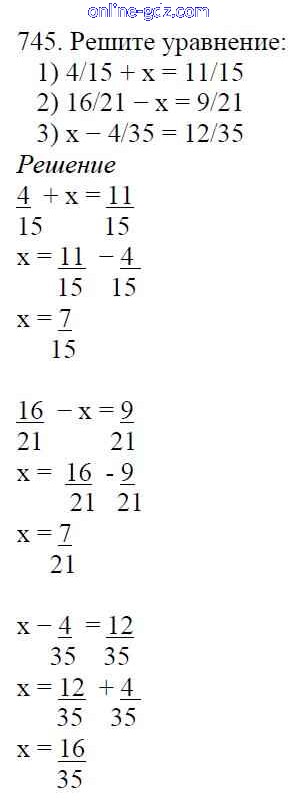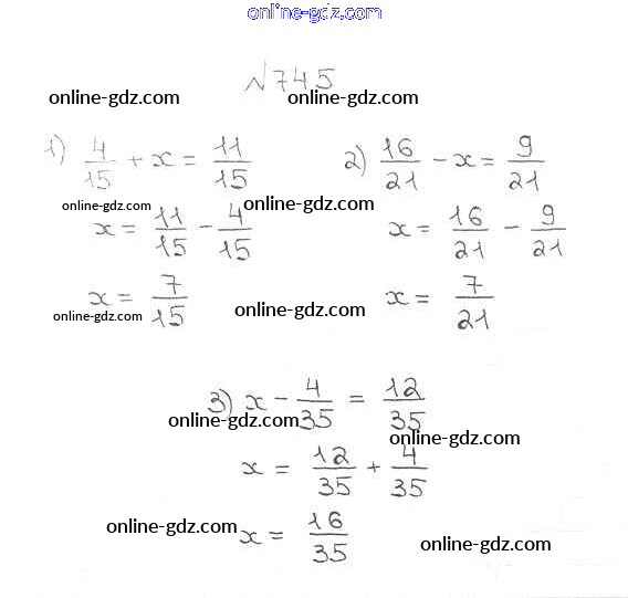 Готовые домашние задания по Математике за 5 класс Учебник Мерзляк, Полонский Алгоритм успеха 2016 - §27. Сложение и вычитание дробей с одинаковыми знаменателями Глава 4. Обыкновенные дроби 745