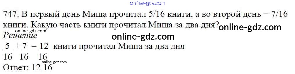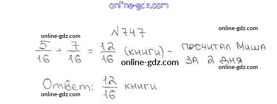 Готовые домашние задания по Математике за 5 класс Учебник Мерзляк, Полонский Алгоритм успеха 2016 - §27. Сложение и вычитание дробей с одинаковыми знаменателями Глава 4. Обыкновенные дроби 747