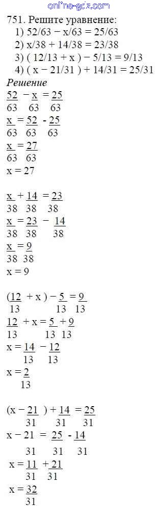 Готовые домашние задания по Математике за 5 класс Учебник Мерзляк, Полонский Алгоритм успеха 2016 - §27. Сложение и вычитание дробей с одинаковыми знаменателями Глава 4. Обыкновенные дроби 751