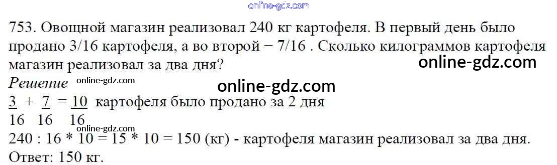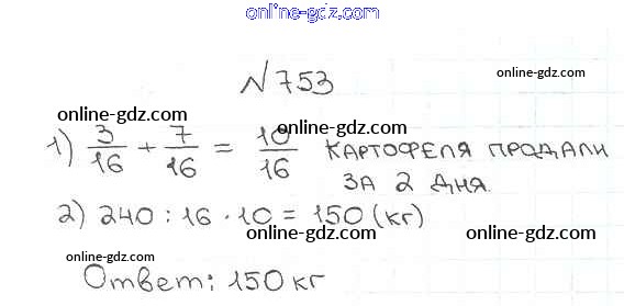Готовые домашние задания по Математике за 5 класс Учебник Мерзляк, Полонский Алгоритм успеха 2016 - §27. Сложение и вычитание дробей с одинаковыми знаменателями Глава 4. Обыкновенные дроби 753