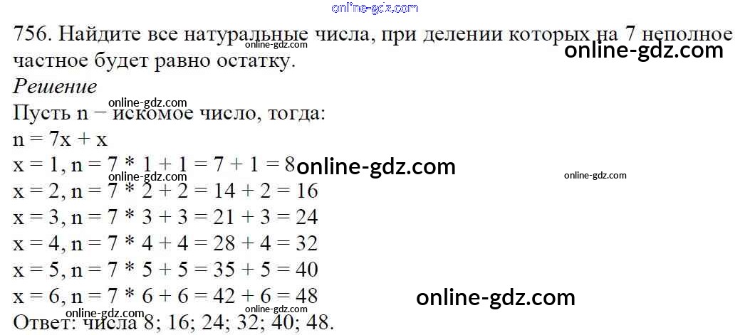 Готовые домашние задания по Математике за 5 класс Учебник Мерзляк, Полонский Алгоритм успеха 2016 - §27. Сложение и вычитание дробей с одинаковыми знаменателями Глава 4. Обыкновенные дроби 756