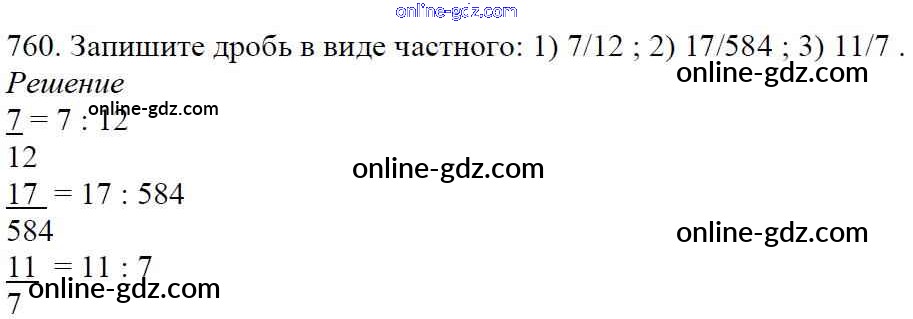 Готовые домашние задания по Математике за 5 класс Учебник Мерзляк, Полонский Алгоритм успеха 2016 - §28. Дроби и деление натуральных чисел Глава 4. Обыкновенные дроби 760
