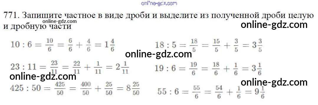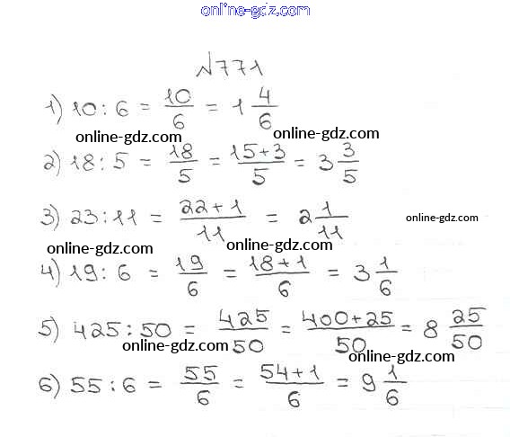 Готовые домашние задания по Математике за 5 класс Учебник Мерзляк, Полонский Алгоритм успеха 2016 - §29. Смешанные числа Глава 4. Обыкновенные дроби 771