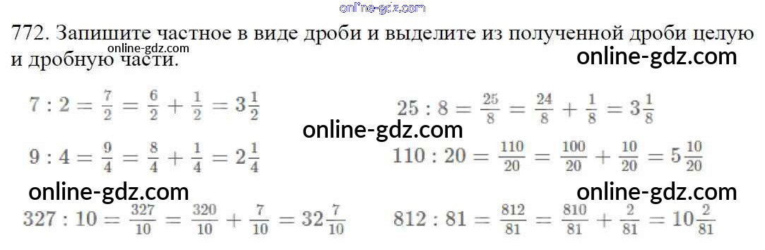 Готовые домашние задания по Математике за 5 класс Учебник Мерзляк, Полонский Алгоритм успеха 2016 - §29. Смешанные числа Глава 4. Обыкновенные дроби 772