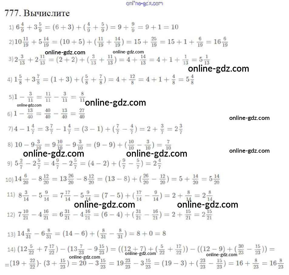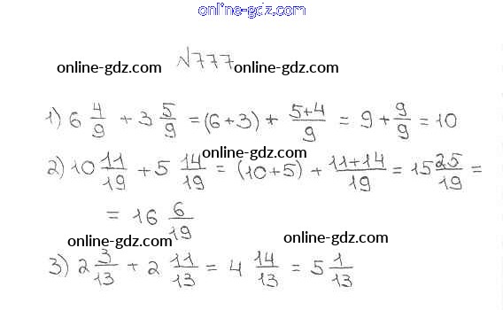 Готовые домашние задания по Математике за 5 класс Учебник Мерзляк, Полонский Алгоритм успеха 2016 - §29. Смешанные числа Глава 4. Обыкновенные дроби 777
