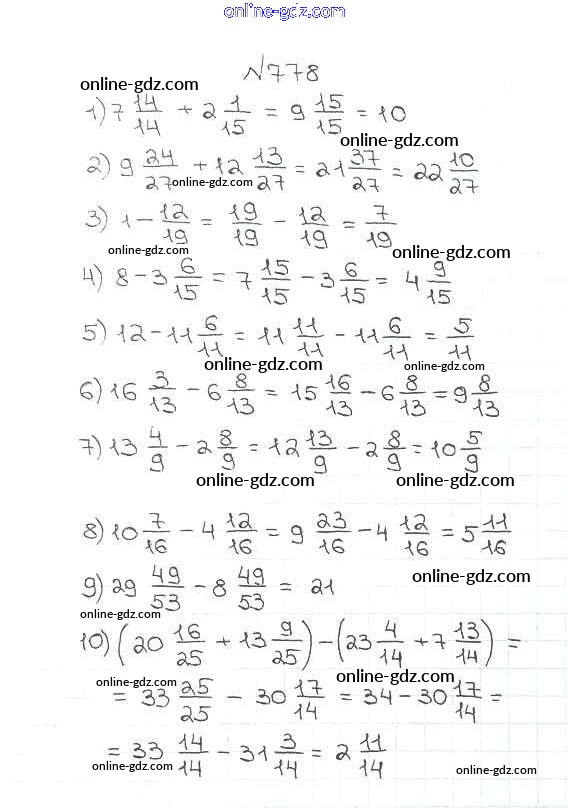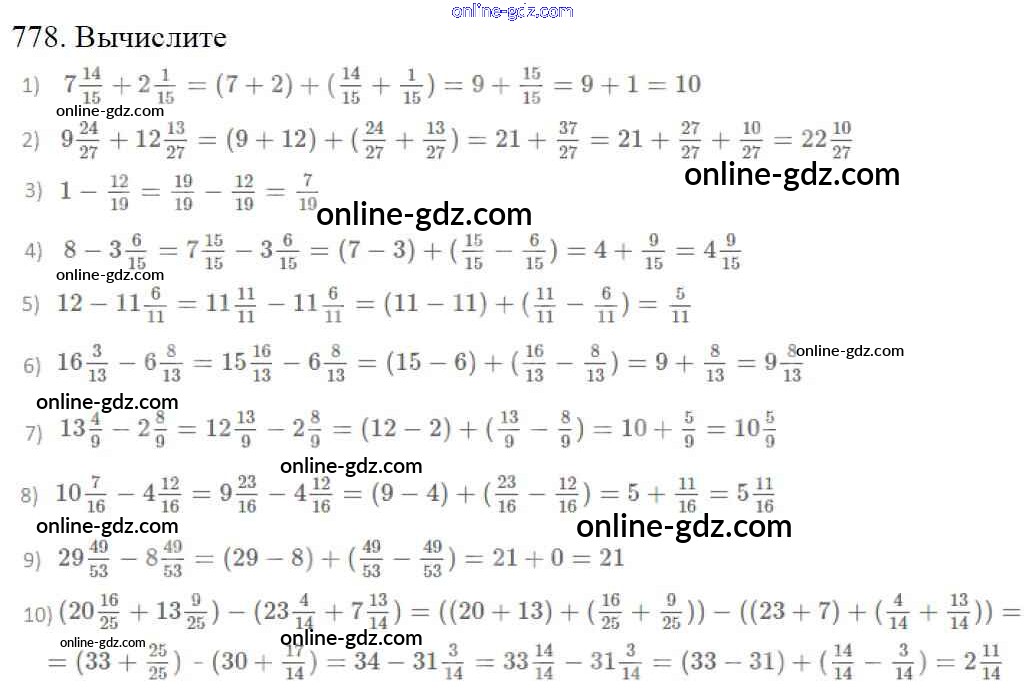 Готовые домашние задания по Математике за 5 класс Учебник Мерзляк, Полонский Алгоритм успеха 2016 - §29. Смешанные числа Глава 4. Обыкновенные дроби 778