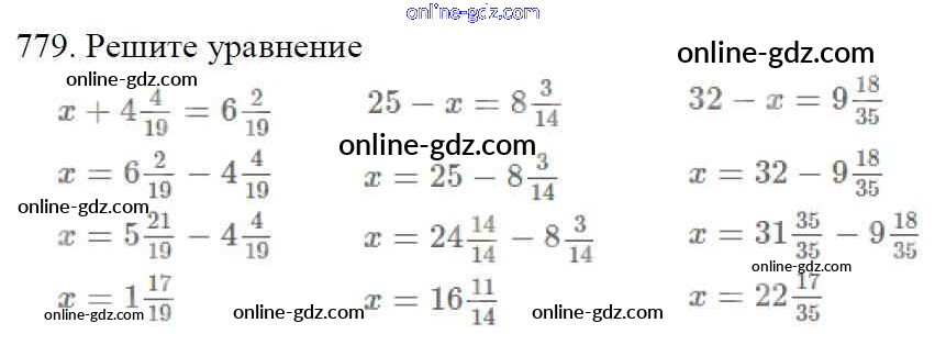 Готовые домашние задания по Математике за 5 класс Учебник Мерзляк, Полонский Алгоритм успеха 2016 - §29. Смешанные числа Глава 4. Обыкновенные дроби 779